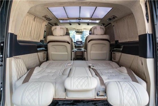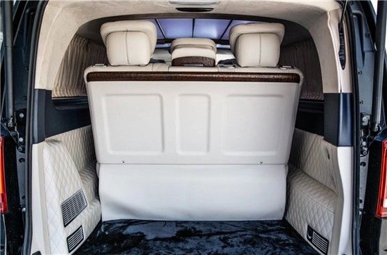 奔驰V260改装VS680价格满足您所有需求。奔驰V260L改装商务车后排三座采用的是电动三连坐沙发座椅,支持电动一键平躺,座椅变大床只需要一秒。后舱为了照顾到没有像全隔断设计那样较好的私密性,V250设计了电动遮光窗帘,让整个空间能够不被外界轻易看到。