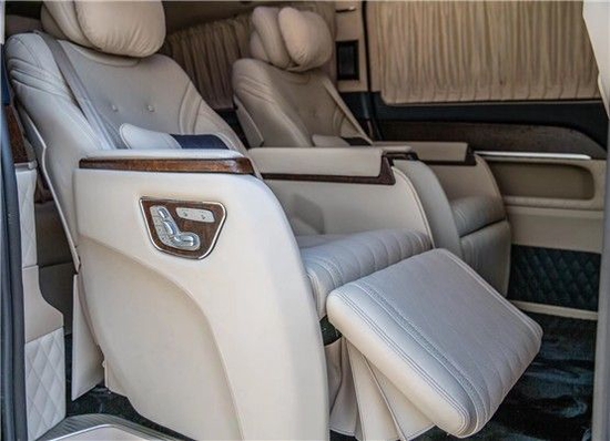 奔驰V260改装VS680价格满足您所有需求。奔驰V260改装红木版第二排座椅采用舒适豪华的德国进口航空座椅,自带通风按摩加热、电动头枕、电动腿托、前后电动调节,舒适宽大的座椅,可以缓解您一天的疲劳。