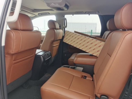 21款丰田红杉5700丰田红杉前排座椅十分宽大,非常符合魁梧的消费者,腰部支撑调节和腿部支撑调节可以让您找到专属于自己的舒适座姿,厚实的坐垫质地柔软,而且通风功能可以大幅提升乘坐舒适性。从而让驾驶者更方便操控坐在驾驶席上,除了更加宽大舒适的空间外,更重要的就是居高临下的感觉。