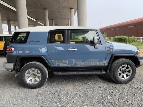 2022款全新丰田FJ酷路泽经典的带丰田标志的车前格栅,竖直挡风玻璃,别具一格的白色圆润方正的车顶,车身后部的四分之一车窗以及后部宽大的空间,尾部的保险杠上设计了深色的踏板,垂直的前后风挡、超大的外后视镜、浑圆的前大灯、双对开门、三雨刷设计等等,都让FJ酷路泽在经典之上。