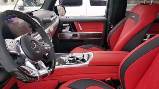 2022款AMG G63内饰方面,新G63保留了新G500的整体设计,除配色差异外,新车还换装了全新造型的平底式AMG运动方向盘,其两侧配以打孔皮质包裹,下部镀铬装饰的造型也与新G 500明显不同,看上去十分战斗。此外,全液晶仪表盘+中控大屏的双12.3英寸屏幕设计在新车上也没有缺席,营造出了浓郁的科技感。