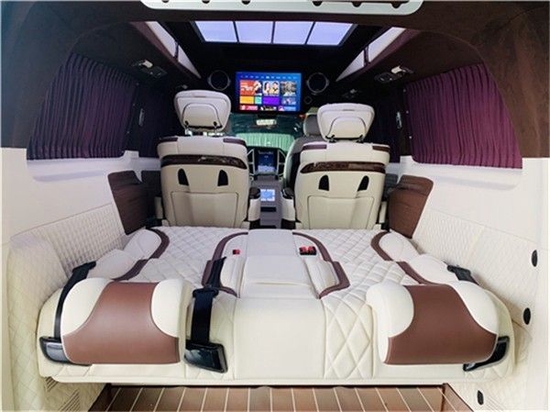 奔驰威霆改装从内饰设计风格到质地表现相较于老款都有显著的革新,摈弃了传统式样冗余的中控台按键排列,取而代之的是大尺寸液晶触控屏,更具现代科技感的掌间操控,其下方则保留了更加实用的常备功能键位。奔驰威霆改装高顶7座商务车,奔驰威霆改装商务车车厢座椅采用了2+2+3的模式,奔驰威霆改装商务车座椅设计得宽大舒适。奔驰威霆改装高顶无隔断7座商务车后排排两个独立,并带脚托、座椅记忆,电动升降头枕、座椅通风加热功能,享受堪称“头等舱”级别,设计体贴入微。