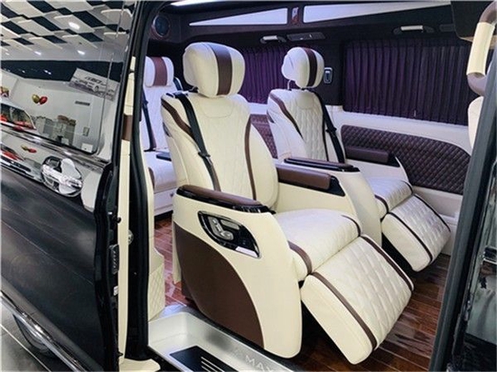 奔驰威霆改装第二排航空座椅,带加热,按摩,通风,一键式电动调节记忆等功能。奔驰威霆改装商务七座座椅人体工程学设计,带有一键式展开及记忆功能,并配备加热、通风、气动按摩、一键式伸缩腿托功能,带来头等舱级舒适体验巧夺空间,私家客厅级后舱体验