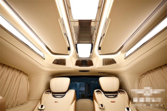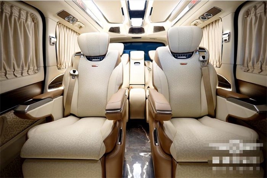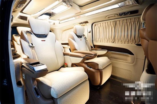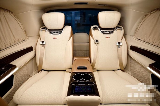 后舱空间更是高雅脱俗,以高端米色搭配香槟色为主色调,显得车内空间更宽敞,每一个座椅都是尊贵定制,8向可调节式座椅,豪华中央扶手,中排豪华独立座椅、打孔皮质包覆、伸缩触控屏全电动控制、加热通风按摩功能、180度旋转,完全根据人体工程学打造,让旅途不再疲惫。