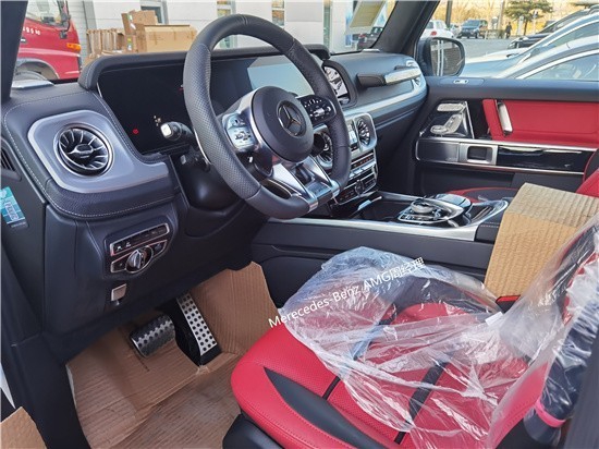 22款奔驰G63内饰方面,奔驰的设计绝对可以用惊艳来形容,无论是经典车型还是超豪华车型甚至是入门级的豪华车上,奔驰的内饰都会让你眼前一亮,当然了这也是奔驰的一个特色。所以这部全新的G63在内饰的表现上也是情理之中的,但是细节上还是有些小小的意外。这种感觉是打开车门的瞬间就能够感受到的。首先仪表和中控屏依旧是采用了同一款液晶屏显示,第一感觉就是科技感爆表。而其他方面例如方向盘,空调出风口,挡杆等等的设计充满设计感。