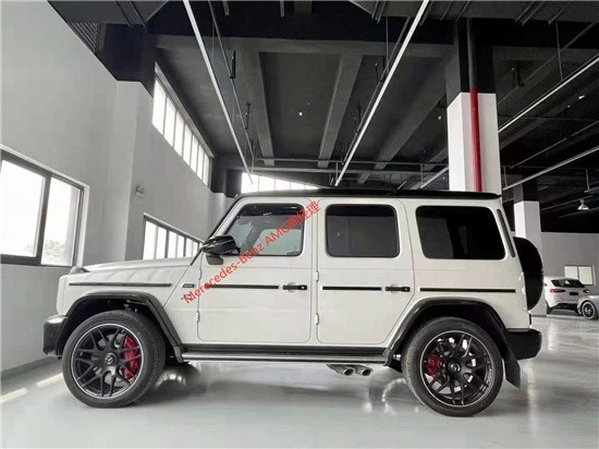 22款奔驰AMG G63 (配置|询价)白色现车它硬朗的方盒子造型,没有多余的弧度、没有任何曲线,眼光所及满是锋利的线条,就连车顶上的导雨沟槽,也是沿着车顶周围一圈,分外焊接上去的金属槽,车门搭钮更是绝不虚 心,硬挺挺 地屹立在 门缝之外,外凸 的轮拱、造 型如同 梯形的引擎盖。
