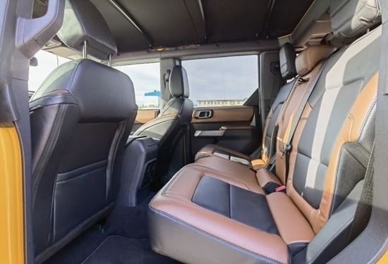 2022款福特烈马的配置上可见它有前后桥锁,防倾杆断开设计,车门采用无框设计,车顶可拆卸,防滚车架,防脱圈的原厂高品质轮毂,悬架间隙较高,315MT泥地胎,全地形反馈系统,越野车标配,车灯虽说像坦克300 (配置|询价)(配置|询价)不过它的车灯更高级,LED转向随动大灯 ,车门上有福特最经典的密码锁,无钥匙进入,车内还有10个扬声器,B&O音响系统,品质很高。