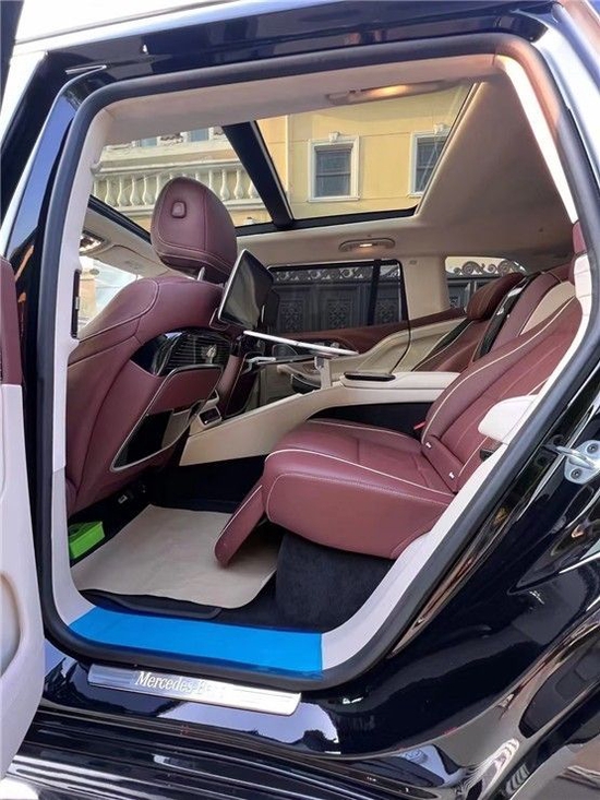 迈巴赫GLS600提供四座布局,四座车型第二排独立座椅相比普通版GLS更加靠后,并且带有巨大的腿拖,其后排座椅最大倾斜角度大43.5度,后排腿部空间最大达1.34米。中央由冰箱、控制台、储物空间和手机无线充电台等进行贯穿,呈现出类似于迈巴赫S级一样的头等舱设计。