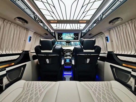 2022款奔驰威霆高顶迈巴赫七座商务车最大的提升在于其贵宾舱的升级。整车采用2+2+3的座椅布局格式,空间一如既往地大,在这里工作,休息,就如在家中般舒适。乘坐感方面的设计理念更贴生活,第二排采用进口航空座椅的通风、加热、按摩、旋转功能,让您享受最惬意舒适的乘坐环境。搭配车内的光纤灯、天使之翼顶灯,满天星氛围灯,一切的搭配都只是为您展示这款奔驰威霆巴赫版的奢华与不凡。