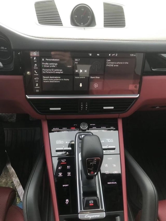 22款保时捷卡宴,最吸引人的地方就是科技感较强,而且触摸键的感觉也是很不错的,不会出现盲操不方便的情况。该车的车顶材料是翻毛皮的,非常的抗脏,但是味道也大。中控屏的尺寸是12寸的,显示效果很好,操控性也很不错。并且还选装了一些功能,像倒车影像这个配备是360度的,效果很好。内饰一直是保时捷卡宴的重点,科技感十足。