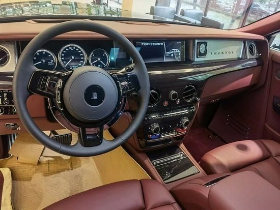 22款劳斯莱斯幻影加长版进入车内,顶级真皮隐隐地散发着牛的气味,在幻影车上,公众还能看到最高水准的手艺和最优质的材料。方向盘的轻易,以及油门和刹车的及时响应。都使得这款庞然大物能够简单的屈服在你的手中。而劳斯莱斯的空气悬挂能够在系统的控制下,及时做出调整在低速时能提高通过性能,高速时增加稳定性。