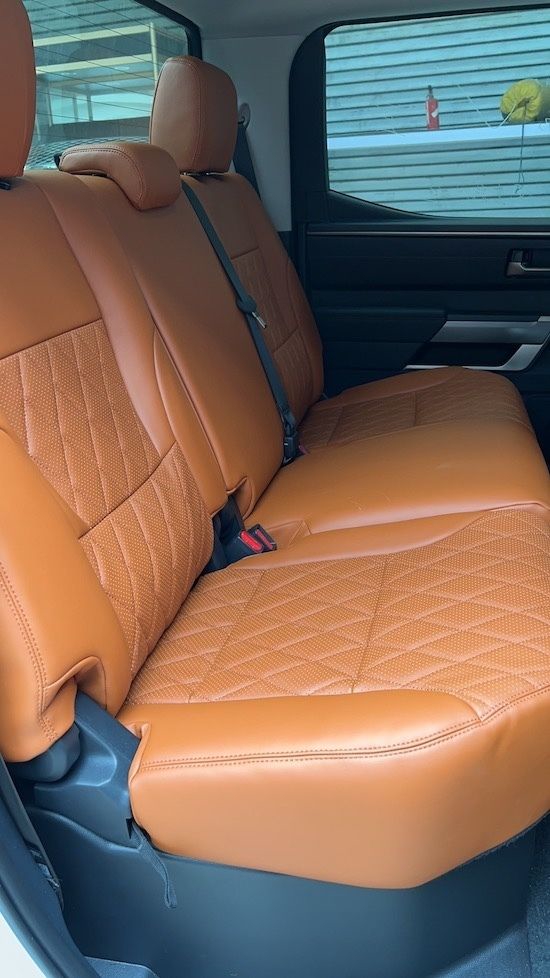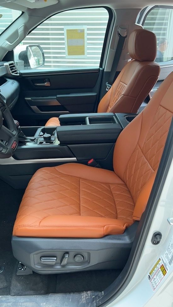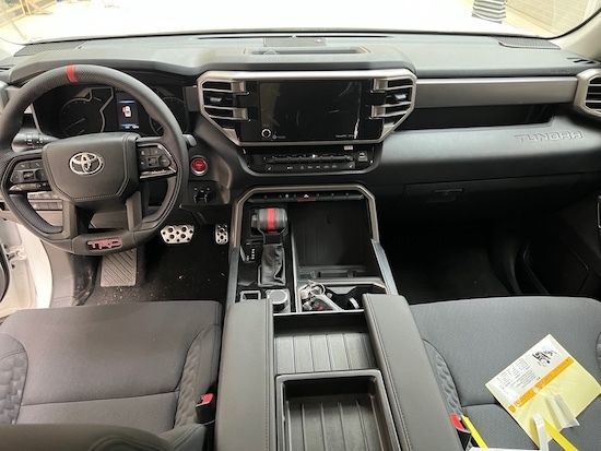 22款丰田坦途的内饰科技氛围已经相当强烈了,不仅有全液晶仪表盘加持,而且提供了超大面积悬浮导航屏幕,视觉效果甚至能够媲美特斯拉,TRD高性能版本更是提供了丰富的内饰装饰,比如红色真皮面料座椅,搭配有专属刺绣装饰。