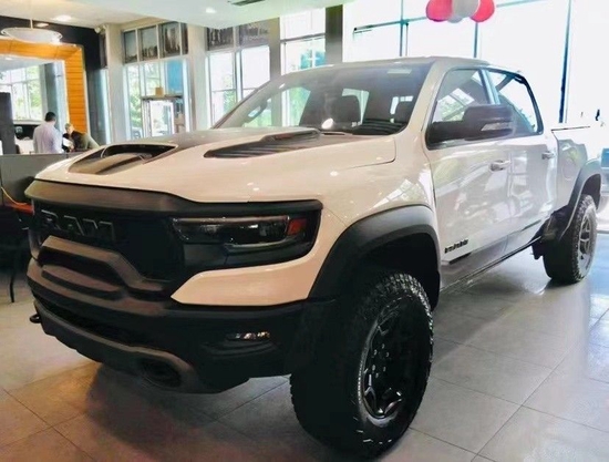 22款道奇霸王龙 美版 白/黑全景天窗,2级设备组包,trx碳纤维包,,安全雷测包,红色内饰走线,胎压监测,床的实用程序,双色油漆,trx外部贴纸,trx后斗防滚架,trx后斗第二个备胎架,off-road风格踏板。