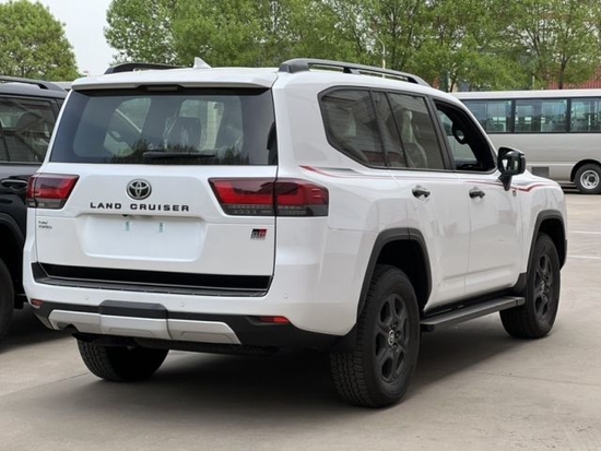 22款丰田酷路泽LC300车身侧面的设计较为简洁流畅,配备大尺寸银色轮圈,车窗外缘配有镀铬饰条,整体依旧呈现了很强的气场。还提供了金属材质打造的迎宾踏板,顶部还可选装金属行李架。车尾为隐藏式排气布局。