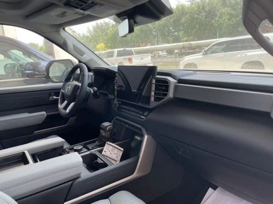 22款丰田坦途座椅提供有皮质包裹,整体的造型也非常宽大,在中央扶手区域的设计上也采用了非常方正的造型设计,并且可以看到前排的储物空间设计还是非常丰富的。