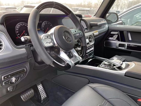 22款奔驰G63豪华精致的真皮包覆提供了足够的舒适性和支撑性,通风和加热功能让乘客免受高温和寒冷的煎熬。中控台多处均采用碳纤维材料覆盖,带彩色TFT显示屏的AMG仪表盘、AMG主菜单和单独的挡位显示器以及采用白色照明的AMG门槛。名贵的选材及精湛的内装令人拍案叫绝。