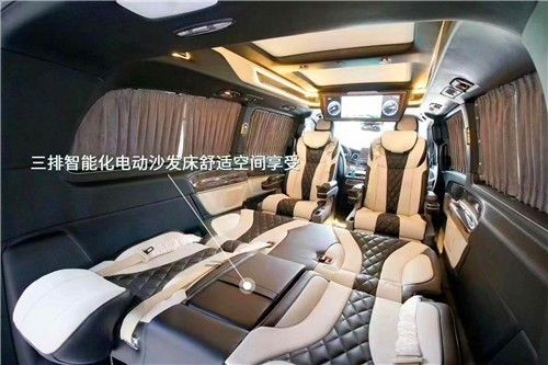 迈巴赫VS680最后排的电动调节座椅可放平变成一张床,可供您长途中休息。迈巴赫VS680整车内饰豪华,采用高光泽桃木地板,配置豪华_宜家宜商。 进入到奔驰V260改装迈巴赫VS680的驾驶舱,采用奔驰现款轿车的设计风格,豪华之感十分浓郁。整个车舱全部采用软性皮质包裹,中控的胡桃木覆盖以及周边镀铬的律动的装饰条,轻而易举的将奢华感受烘托出来。奔驰VS680动力系统依旧为2.0T汽油发动机与7速手自一体变速箱搭配,具有高效的操控性能,低能量消耗以及超乎寻常的舒适感,为驾驶者与乘用者提供难忘的驾乘体验。