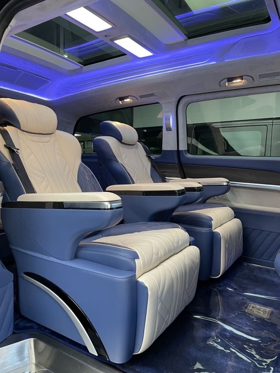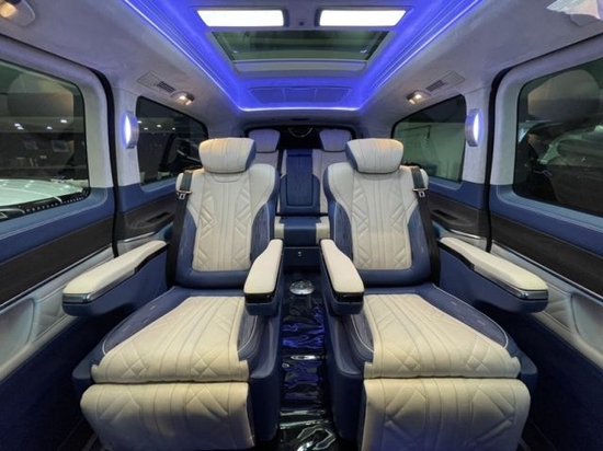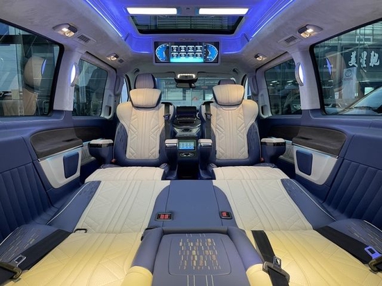 v260L内饰非常奢华,无论是中控台还是方向盘,都与奔驰轿车采取了相同的规划,进入车内,绝对能让你情不自禁的感叹道:这才是大奔!环顾座椅四周,真皮、实木、金属合理搭配,整体视觉效果相当不错,做工方面,V级车内饰自然也坚持了豪华品牌应有的高水准。奔驰V级 采用的三幅式方向盘是与C级 (配置|询价)同款样式,所以,不会给驾驶者带来开大车的压力。换挡拨片的加入,也算是一处惊喜。