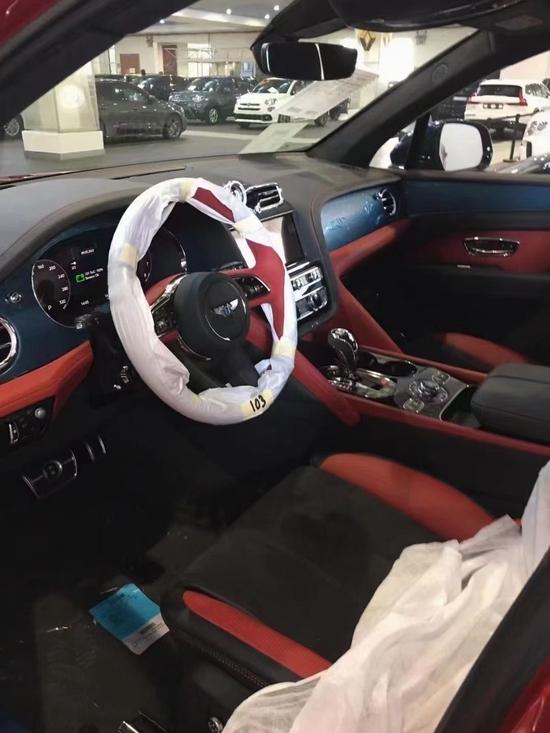 22款宾利添越中控以双翼造型为设计理念,延续了宾利优雅华丽的造型风格,手工内饰甄选木材和皮革,打造您独一无二的专属座驾。宾利添越每一处风格都诠释着沉稳大气的贵族气息,在铝合金车身的表面再覆以一层由金属铝与高密度钢混合铸造的结构,完美的融合了动感与奢华。