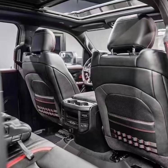 动力方面,道奇RAM搭载6.2L机械增压发动机,能够获得523千瓦最大功率和880牛·米峰值扭矩。该引擎也应用在地狱猫之上,强劲充沛的性能输出得到诸多消费者喜爱。其传动上则是匹配8速手自一体变速箱,挡位切换丝滑顺畅。当然四驱系统也没有缺席,帮助该车拥有可靠的脱困能力。值得一提的是,该车零百公里加速仅需用时4.6秒,最高时速可达到190km/h,算是一台“性能猛兽”。而为了改善驾乘舒适性,其不仅以皮质材料覆盖座椅,还搭载TRX车型专属悬架系统。