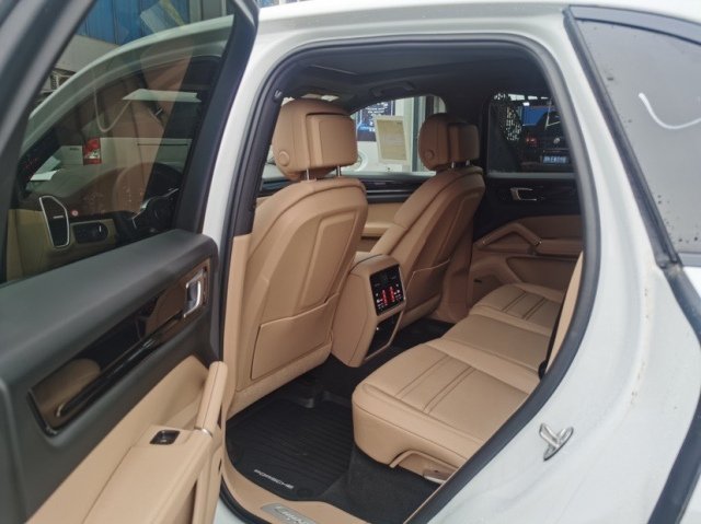 保时捷卡宴配置:金属漆 、21turbo轮、大豪华包(全景天窗、矩阵大灯、PDSL动态照明、前座椅通风、后座椅加热、四区空调、智能卡、并道辅助、方向盘电动调解、14项座椅调节、BOSE音响、防眩目后视镜、助力转向升级、7色氛围灯)、驾驶辅助包(环影、抬显、雷达测距、夜视仪系统)、黑色窗条 。