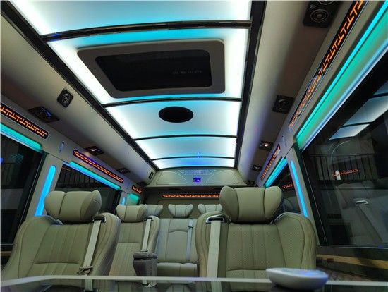 从内饰上来说,丰田考斯特改装版从座位的布局上采取了后排座位数为四个,中间三排采用左二右一的的布局,前排为豪华首长席,并且配备办公桌以及固定秘书桌。在上车门的右端安装并向设备,主驾驶后有隔断分离。如此设计,乘车空间宽敞,设计贴心,豪华的办公桌椅带给我们不一样的乘车感觉。人们总说高贵的人会步步登高,其实脚下的装饰对于彰显我们的身份是十分重要的。