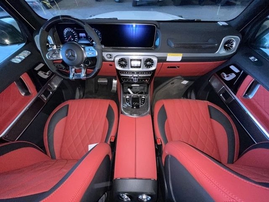 22款全新G63内饰方面,新G63保留了新G500的整体设计,除配色差异外,新车还换装了全新造型的平底式运动方向盘,其两侧配以打孔皮质包裹,下部镀铬装饰的造型也与新G 500明显不同,看上去十分战斗。此外,全液晶仪表盘+中控大屏的双12.3英寸屏幕设计在新车上也没有缺席,营造出了浓郁的科技感。