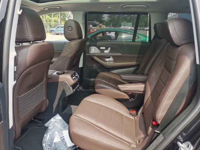 2022款奔驰GLS450是一台全尺寸的SUV,后排乘客也可以独立调节空调温度。全景式双天窗,浸入式星空体验。真皮座椅,带有通风加热功能,前座椅头枕舒适,适合长途驾驶中减少驾驶员疲劳度中控台和车门都有木质纹理装饰,凸显整车空间奢华体验。