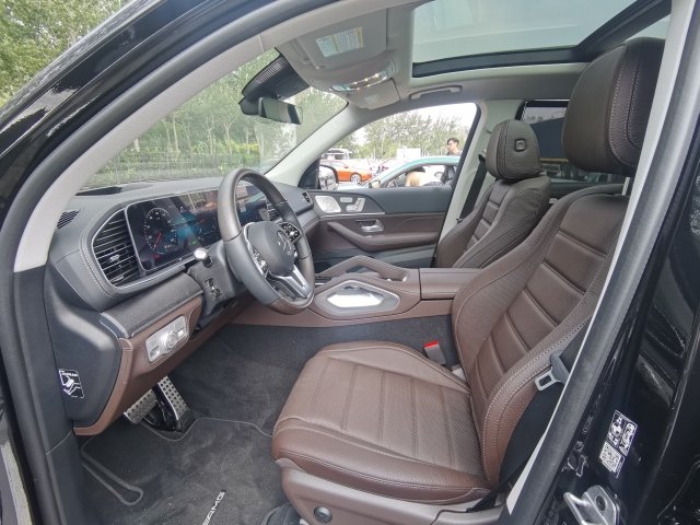 2022款的奔驰GLS450内饰方面,则延续了现款S级的造型,用的是贯穿式中控台双屏设计,12.3英寸的双液晶显示屏带来的科技感爆强,并且搭载 了奔驰最新的MBUX人机交互系统,采用搪塑,皮革,实木,三幅式平底方向盘动感十足,头顶一个全景天窗。