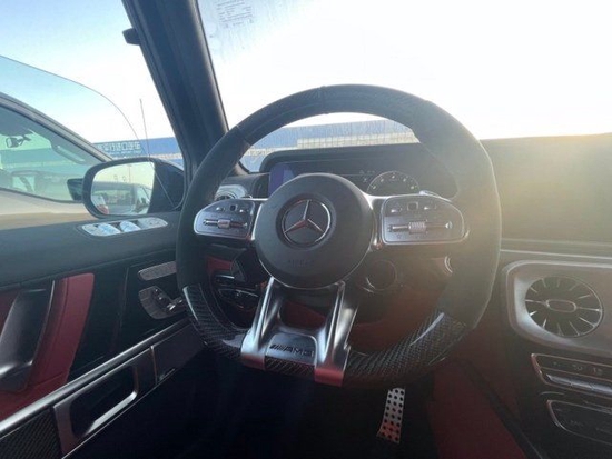 2022款奔驰G63内饰方面,新G63保留了新G500的整体设计,除配色差异外,新车还换装了全新造型的平底式AMG运动方向盘,其两侧配以打孔皮质包裹,下部镀铬装饰的造型也与新G500明显不同,看上去十分战斗。此外,全液晶仪表盘+中控大屏的双12.3英寸屏幕设计在新车上也没有缺席,营造出了浓郁的科技感。
