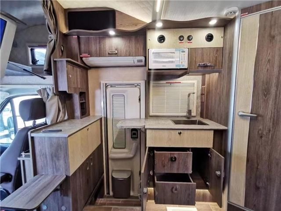 车身两侧分别配有意大利进口菲亚玛电动遮阳棚、户外抽拉式防风燃气灶、户外厨具储物柜、水电接口、户外翻板等多种实用配置。133-1185-6676