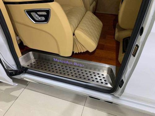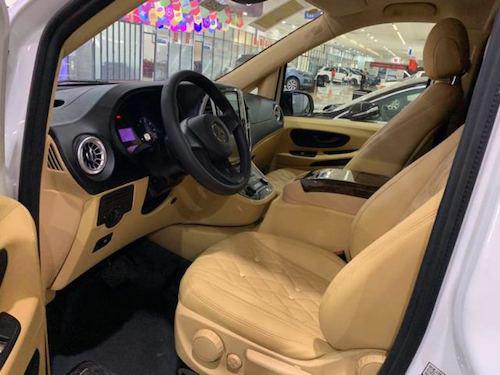 奔驰麦特斯Metris AM高配版 配置:七座(2+2+3),17寸合金轮毂,行李架,V一CLASS中网,中文导航,中央竖屏式大屏导航,LED鹰眼氙气大灯,流水型转向灯,格型包覆中央扶手带冰箱,仪表台包覆,内门板包覆,,主副驾驶电动座椅,第二排通风加热可旋转航空座椅,第三排电动可放平座椅,第三排杯架,第三排座椅后抽屉,双侧电动门,豪华整车窗帘,后掀式电尾门,可拆卸式钢琴漆会议桌,豪华柚木地板,双高清定制头枕DVD,主副驾驶后背小桌板,镀铬门槛,顶部十二宫格及鹿皮绒包覆,贵宾区强化隔音隔热处理,触控屏调光控制系统。(更多车型配置及价格请关注文章尾部电话↓)