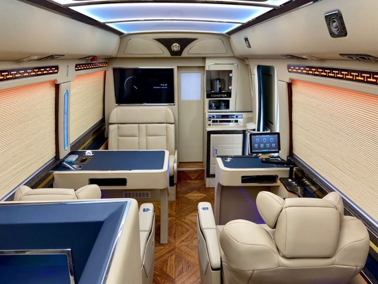 丰田考斯特改装商务车在内饰的设计追求独特的尊贵,同样也注重内饰的豪华,所以在改装之时除了豪华的电动沙发之外我们还可以加装原装进口的埃尔法 (配置|询价)座椅,这一款座椅单个价位就可以达到去10万,但是他却可以给我们带来无限的舒适,丰田考斯特改装7座房车内饰的座椅带有通风加热以及电动脚托等功能,这样舒适的座椅再配上那高大上的办公桌,档次感立刻就可以得到提升