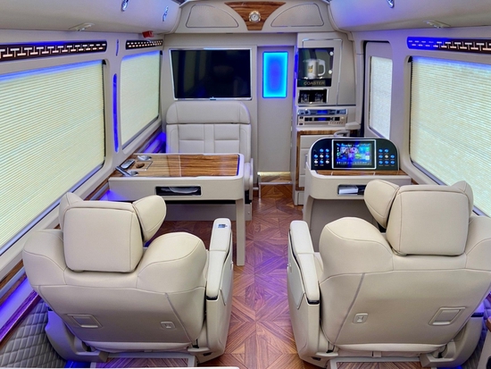 丰田考斯特7座改装商务车内饰的独特还体现在内饰窗帘以及地毯的改装上,豪华的游艇木地板在配上铝合金通道压条,美观大气而又十分的时尚。而这样的游艇木地板均采用上好的柚木,没有任何加工的气味。而内饰的百褶窗帘也为丰田考斯特7座旅居版在内饰的设计上增加了不少的色彩。丰田考斯特改装商务车在内饰的设计上有很多种改装的方案,无论您需要什么样的车型,接待的或者是旅行的或者是商务活动的,北京车林绿地丰田考斯特改装中心都可根据你的需要完成个性化的私人订制。