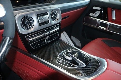 2022款奔驰G63内饰依旧采用了大尺寸双连屏,这是奔驰品牌经典的内饰设计语言。同时,作为AMG车型,新车还在车内大量运动碳纤维材质点缀,运动氛围营造搭配。