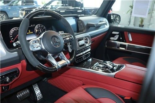 2022款奔驰G63 (配置|询价)保持了奔驰G级 (配置|询价)经典的方正外观,并在普通G级的基础上加入了大量运动套件。具体来看,新车提供了直瀑式格栅,车侧采用了大尺寸多幅轮圈,并针对内部卡钳进行了喷红处理,运动味十足。此外,新车还配备了运动排气。