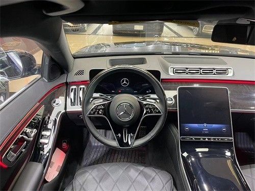 奔驰S580采用了三幅式的全新造型的方向盘,新车的中控台上采用了钢琴烤漆面板装饰,上面采用了多条横向的白色装饰条点缀。采用了悬浮式的纵置大屏,液晶仪表采用了悬浮式的风格。第二排座椅,新车的第二排采用了两个独立的豪华座椅,中间配备了独立的多媒体系统,新车的后排配备了无线充电、冰箱,后方的地台上采用了钢琴烤漆的面板。新车的后排座椅非常豪华,上面采用了菱形的纹路,门板上也采用了非常精致的设计。