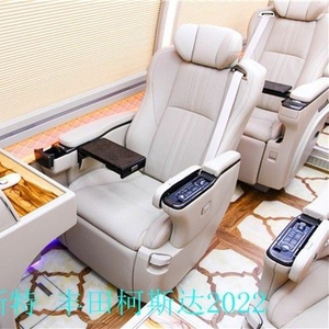 丰田考斯特改装商务车在内饰的设计追求独特的尊贵,同样也注重内饰的豪华,所以在改装之时除了豪华的电动沙发之外我们还可以加装原装进口的埃尔法 (配置|询价)座椅,这一款座椅单个价位就可以达到去10万,但是他却可以给我们带来无限的舒适,丰田考斯特改装7座房车内饰的座椅带有通风加热以及电动脚托等功能,这样舒适的座椅再配上那高大上的办公桌,档次感立刻就可以得到提升。