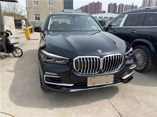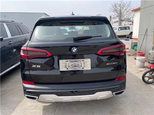 宝马X5外观相当霸气,外观设计硬朗犀利,整车尺寸比之前的车型略大,更大的进气口和延伸至前中央进气格栅的冰铜车底护板,虽然尺寸更大宝马一贯对称的风骨不失宝马X5的独特之处在其动感的线条轮廓中一目了然。一些最新的家族设计也被用于一些设计元素的创新。前格栅变化明显,更显修长,并与大灯融为一体。