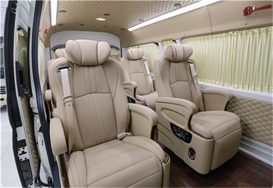 丰田海狮配置:座椅调节,扶手,杯架,高级绒座椅,侧车窗,头顶部空调出风口加装:4个航空座椅,桃木内饰,吸顶DVD木地板座椅通风按摩。丰田海狮改装商务车为了提供给我们舒适的乘车环境,车内采用最舒适的音响设备和设备,丰田海狮改装商务车为我们在旅行中提供了优质音乐和旋律的需要。