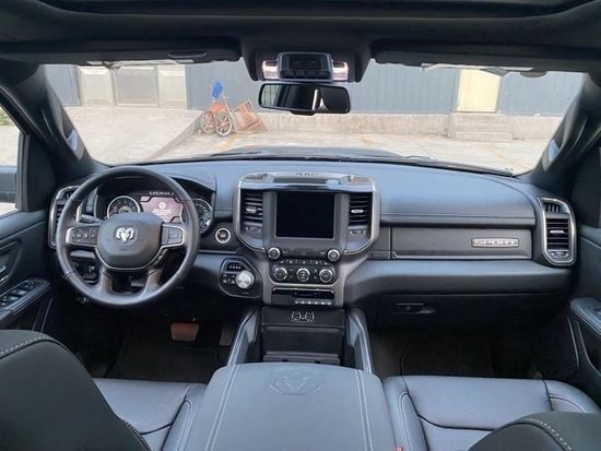 道奇公羊在内部设计上还是延续了美式那种比较粗犷的风格,规整的中控台设计看上去比较死板,但丰富的配置会让你不由得为其称赞。中控台的设计简洁硬派,符合公羊的气质。仪表盘底边有花纹,则更加凸显了这款车的文雅性。软性材质的仪表台设计,摸上去手感非常舒服,并无些许生硬之处。