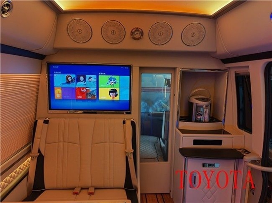 丰田考斯特 (配置|询价)改装公务车特别注重实用的设置,高端办公桌,双人汇报桌,固定秘书座椅。最突出的特点是我们把车内的冰箱和酒柜装饰得与驾驶员驾驶座后面的显示屏分离,把车和驾驶座分开。我们可以在隔断中间加装电动门,方便来回沟通和交流。驾驶舱与乘员车厢之间增加隔断,不仅是为了内部结构美观,也是为了提高行车的安全系数。我们的改装是为了彰显您的尊严,保证您的舒适和安全。众所周知,驾驶员需要一个安静的环境,增加隔断,给驾驶员一个安静的环境,更能保证驾驶员的注意力,不会因为乘务人员的交流而分心,保证行车安全。