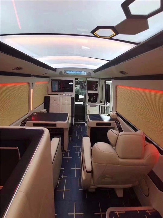 丰田考斯特房车高端改装商务车更加注重商务旅行中办公的实用性。真皮航空座椅,电动调节装置可以让您自行调节最舒适的空间距离以及靠背以及脚托的角度,特殊的座椅构造,增加腰部的支撑,宽敞的空间让您的双腿收放自如,忘却旅途的紧迫感,体验如家般的感觉,缓解您在行车旅途中的疲劳。豪华高档办公桌以桃木及真皮为材料,华通丰业打造最舒适高端使用的办公环境。360度可选装首长席,双人汇报席,方便旅途中的您进行紧急会议,舒适的座椅,实用的办公设置,贴心的电源以及显示屏设置,考斯特高级改装于细节之处展现尊贵风格,在平凡之体现贴心设计。