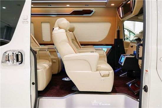 乘客舱配备了可360旋转的首长级航空座椅,拥有通风,加热,腰托等等功能,旋转过去之后再配备高档的办公桌版,提供了一个很好的娱乐空间或会议空间。充分体现了其人性化的设计以及对于乘车人员舒适度的考虑。