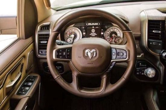 道奇公羊仪表台采用软性材质并以真皮包裹,手感非常舒服,镶嵌的木饰采用原木无漆打磨,做工细致考究,保留了木材的纹理细节。完全摆脱了美式的粗糙感。道奇公羊整体造型以方型为主,饱满感在车辆每一个环节都被表现的淋漓尽致。特别是前脸造型,夸张的设计给人很强烈的视觉冲击。
