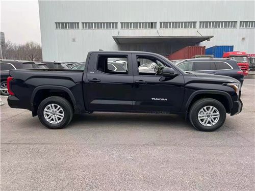 22款丰田坦途直接提供了有棱有角的车头前脸,大尺寸蜂窝状进气中网搭配镀铬边框处理,两侧泪痕造型LED矩阵大灯视觉效果并不输给福特猛禽 (配置|询价)。车身侧面看也有了方盒子外观效果,甚至还要熏黑车窗立柱营造出悬浮车顶。