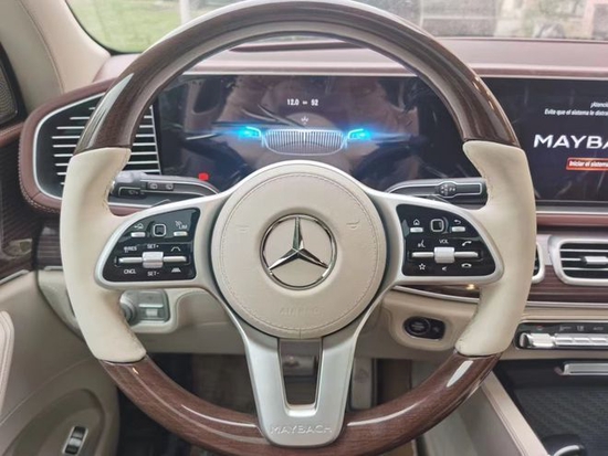 22款奔驰迈巴赫GLS600配备了纳帕皮革内饰,配上迈巴赫特定的数字乐器和独特的仪表装饰,整个机舱弥漫着满满的高级感。后排设计是可躺平并具有按摩功能的座椅,还有一个带折叠桌和冰箱的固定后排中控台,全景玻璃天窗进一步增强了车内的采光度。车身后部还添加了一种特殊研发的货物盲板和消音材料,以减轻道路噪音。
