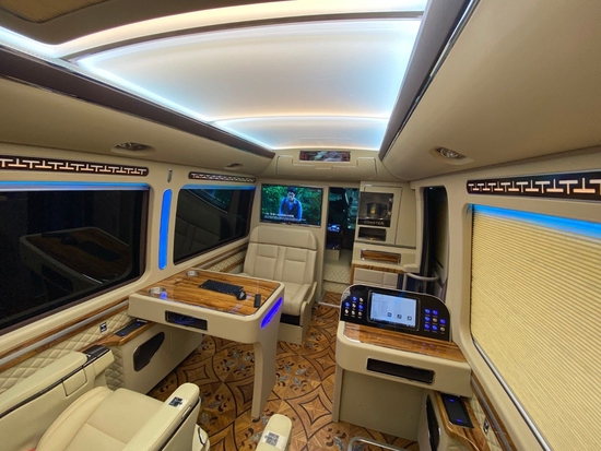 丰田考斯特12座改装商务车,除了座椅的改装以外,车内隔断的增加也是别有一番风味的,隔断的增加,将驾驶席和乘客席分开而设,同时我们可以在隔断上增加一些精美的装置,电子时钟,或者显示屏,方便有使用。隔断的效果最主要还是分离了司机和乘客,既能够给司机一个安静的驾驶环境,同样也为乘驾人员提供了更加静谧的乘车空间。