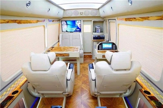 丰田考斯特改装商务车在内饰的设计上有很多种不同的方案,我们可以根据自己的需要选择合理的配置。华通丰业丰田考斯特改装商务车可以增加车内铬酸,隔断的设计也是丰田考斯特改装的一大亮点,隔断既能够保证为驾驶人员提供一个安静的驾驶环境,同时报也能够增加车内的的装饰提升商务车的档次,并且可以保证车内人员的休息环境的需要以及会议隐私的需要。