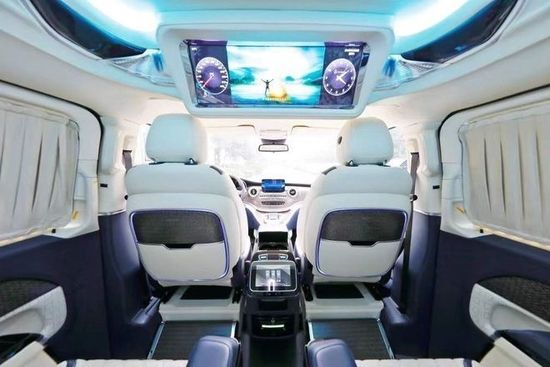 奔驰V250改装商务车2+2+3座椅,也是商务车最为流行的座椅布局,第二排航空座椅,打孔真皮处置更透气,座椅透风、推拿赐与您更温馨的乘坐感触,更有360度扭转功用,无论是家庭出游照顾孩子、陪家人谈天,亦或是商务洽谈,都能让您随心所欲,第三排座椅打开,便可构成一张宽大温馨的沙发床,方便乘车人员休息。